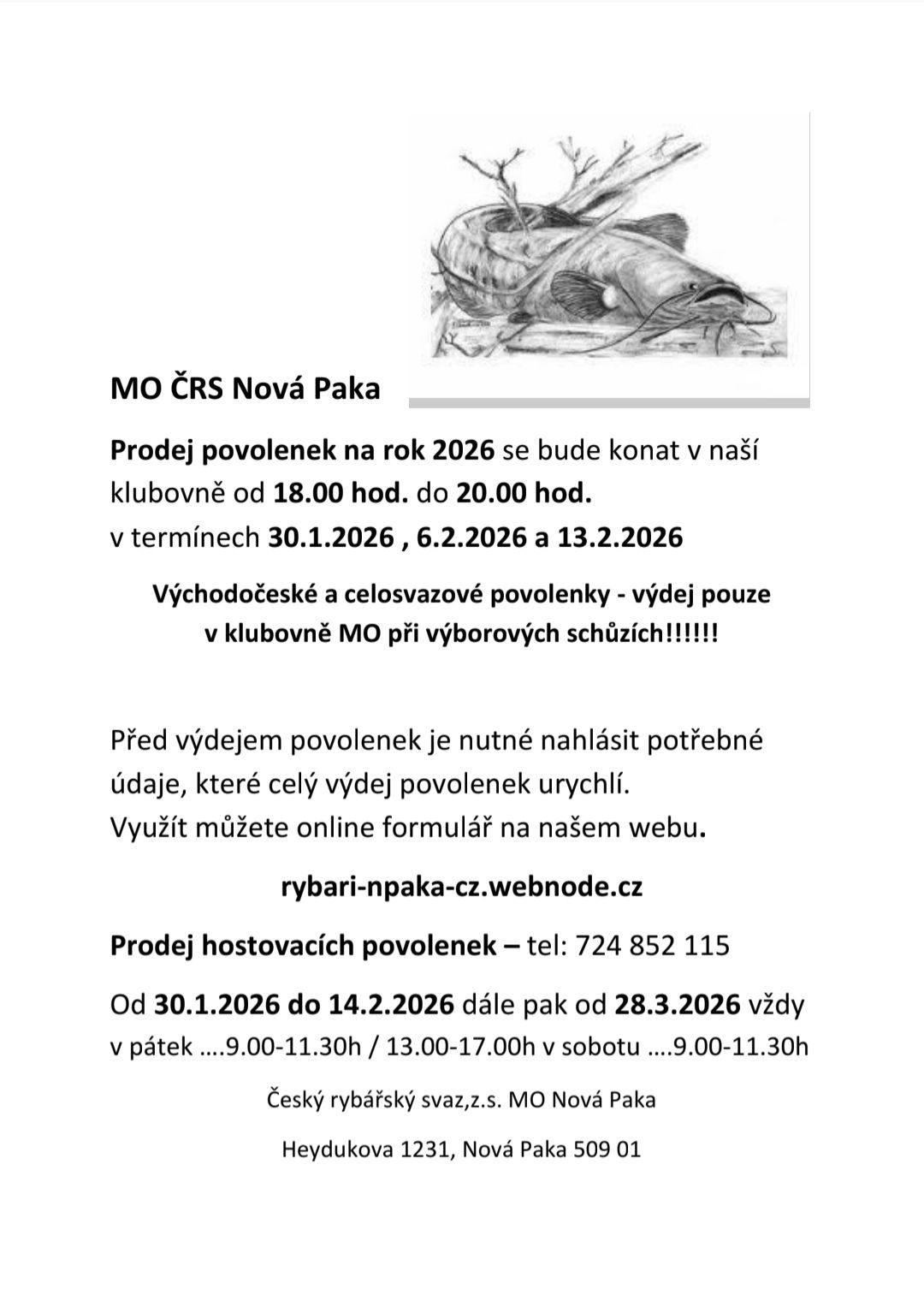 Doplněk k rybářskému řádu MO ČRS Nová Paka platný od 1. 3. 2021
